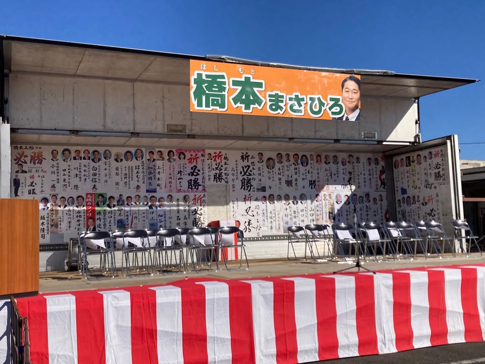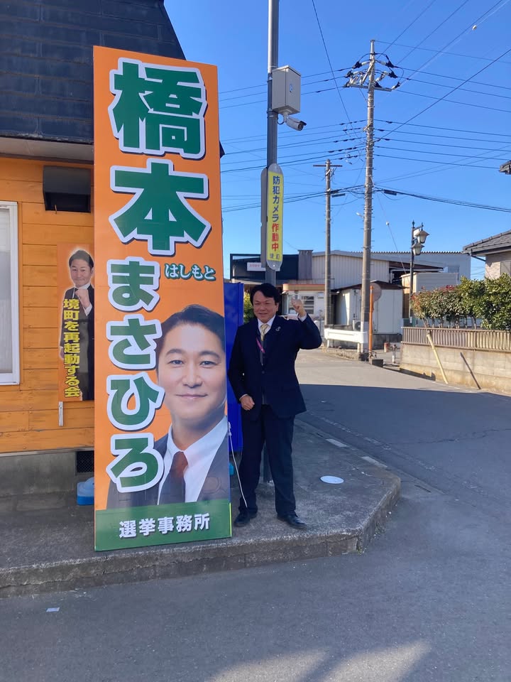 盟友の #茨城県 #境町 現職町長の #橋本まさひろ 候補が出馬。夕刻17時までに他の立候補が無く、#当選 が確定しました。 夕刻の報告会に出席できないため、午後に #陣中見舞い に伺いましたが、いきなりの #街頭演説 となり、応援させていただきました。 会場準備の様子を拝見しましたが、町長はおろか国会議員でもあり得ないレベルで、実績と人脈の凄さを実感しました。 ご当選おめでとうございます。これからもご指導をよろしくお願い申し上げます。 #春日部市長 #いわや一弘 #かすかべプラスワン