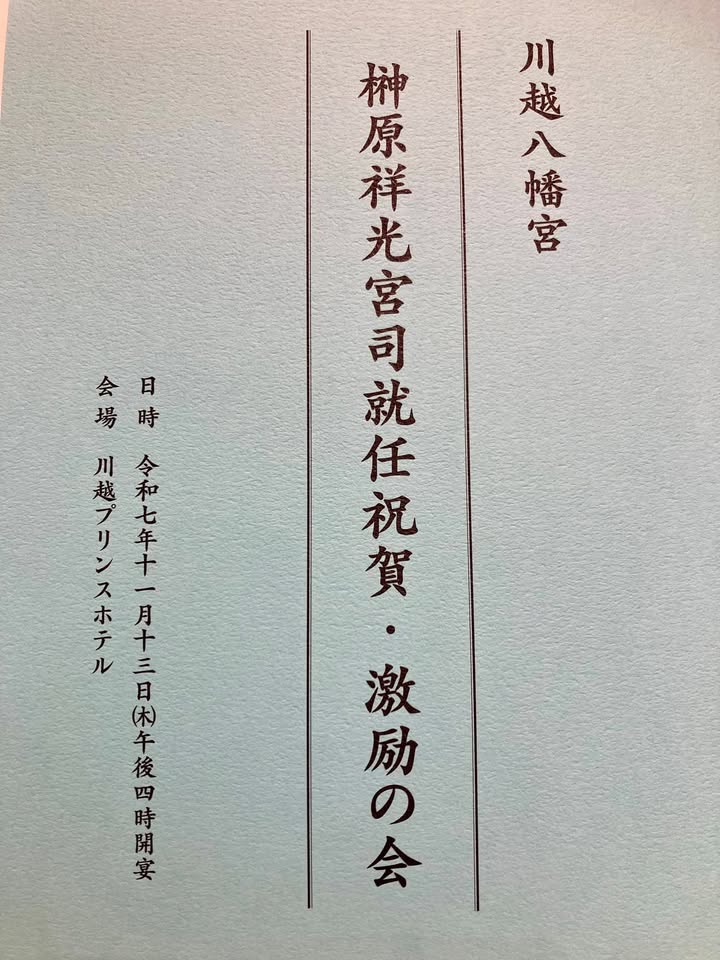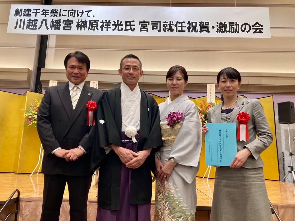 まもなく創建1000年を迎える #川越八幡宮 の宮司として、榊原祥光様が就任され、その祝賀・激励の会に、特別発起人として出席しました。