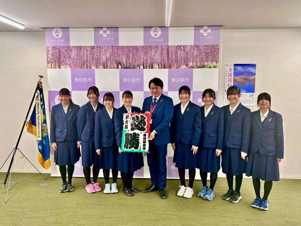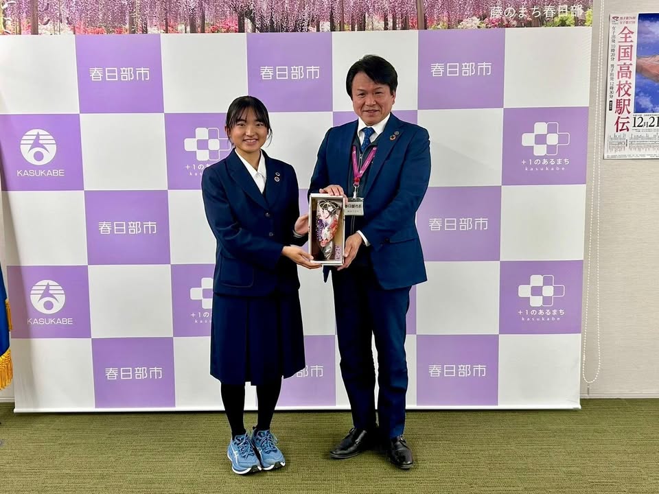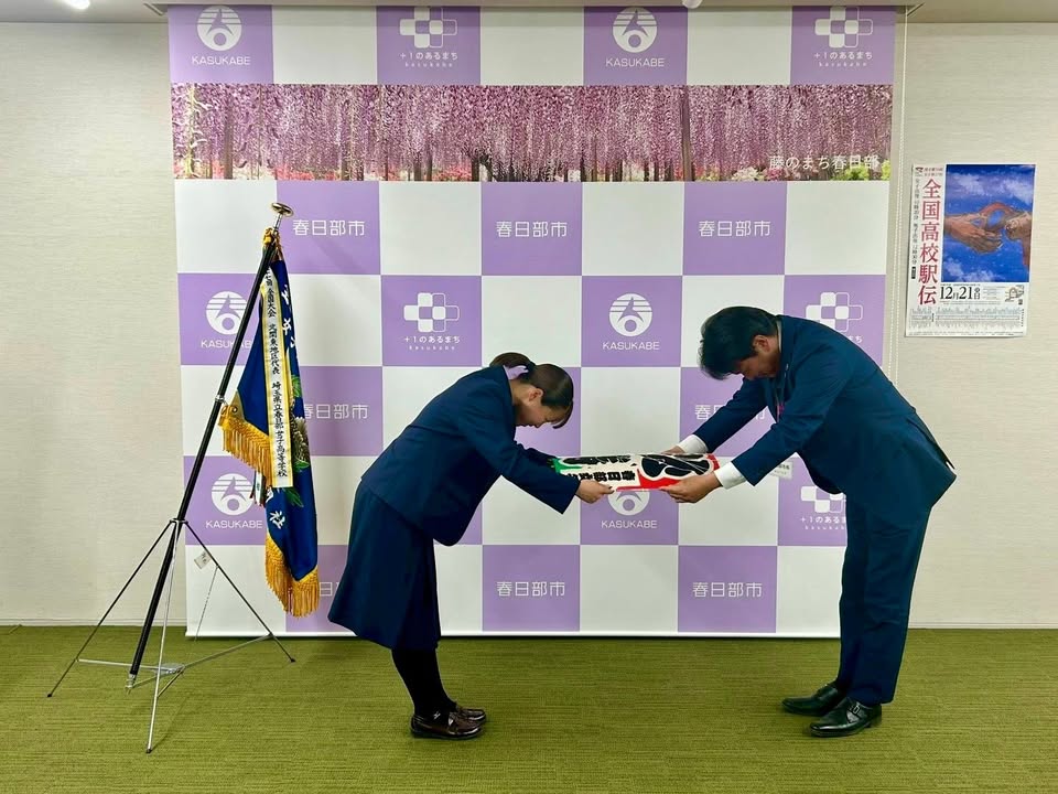 関東大会にて、#春日部女子高校陸上部 が、北関東4県(埼玉、群馬、栃木、茨城)の優勝校を除く最上位の #地区代表校 になりました。 #全国高校駅伝 #初出場 報告のために #市長表敬訪問 を賜り、鎌田教育長と一緒に激励させていただきました。 12月21日に、#京都 の #都大路 を彼女たちが走ります。#春日部 の代表、#埼玉 の代表として、ぜひ応援しましょう! #春日部市長 #いわや一弘 #かすかべプラスワン