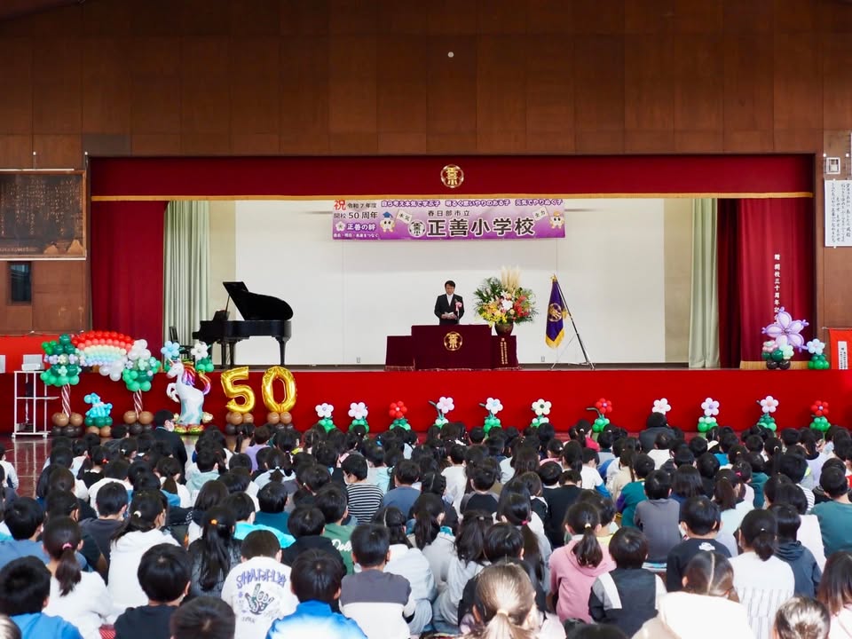 #春日部市立 #正善小学校 #50周年記念式典 が挙行。厳粛で素晴らしい式典でした。特に代表決意発表は、内容が素晴らしくとても感動しました。 そしてラストは、#バルーン リリース🎈大空へ飛んでいく風船は、児童たちの限りない未来への可能性を感じました。 これからも皆さんを応援します。50周年誠におめでとうございました🎈 #春日部市長 #いわや一弘 #かすかべプラスワン