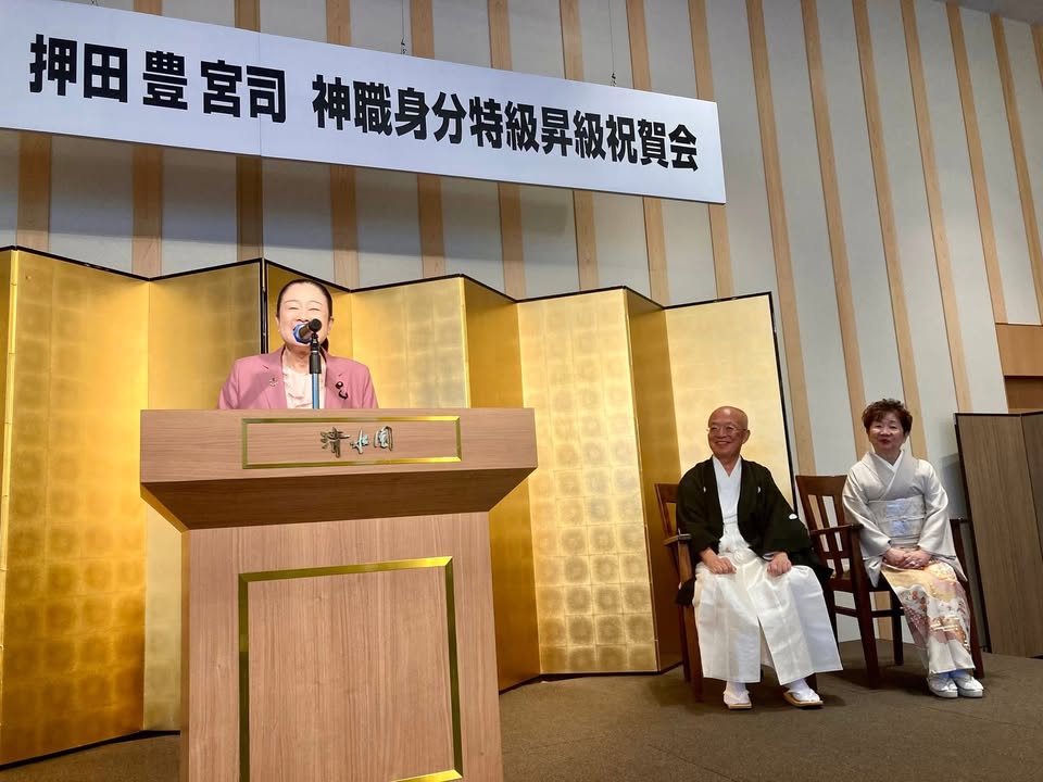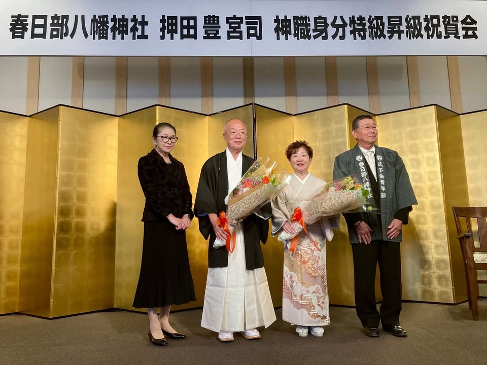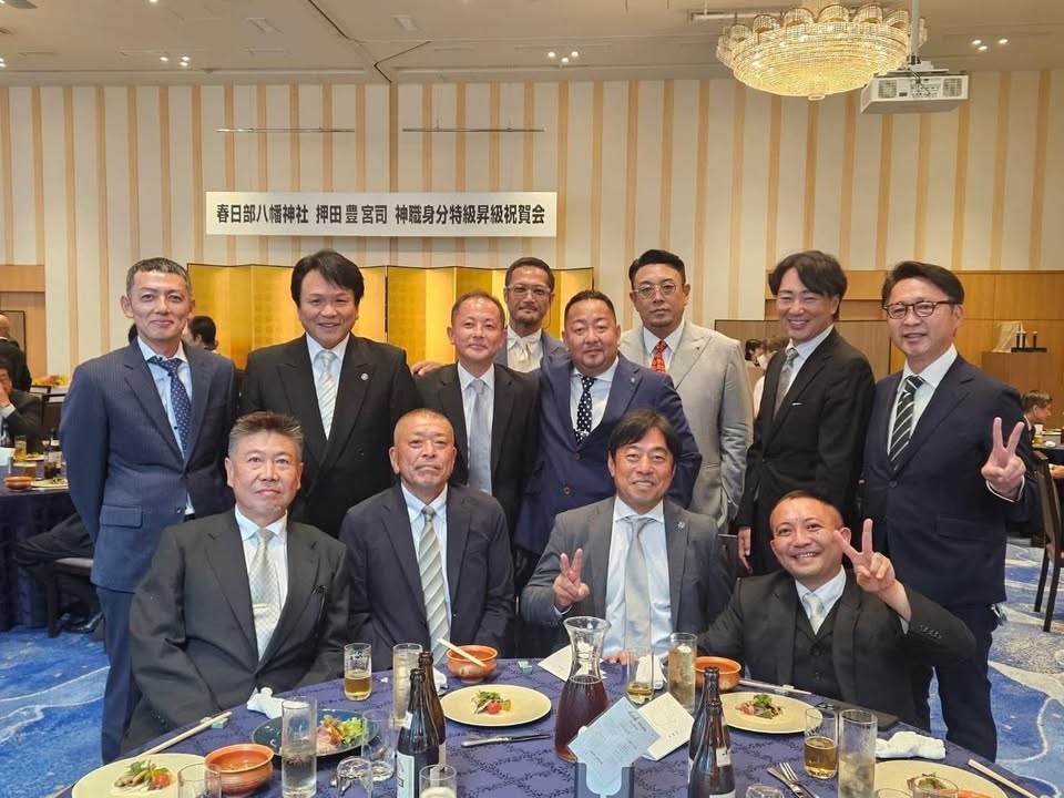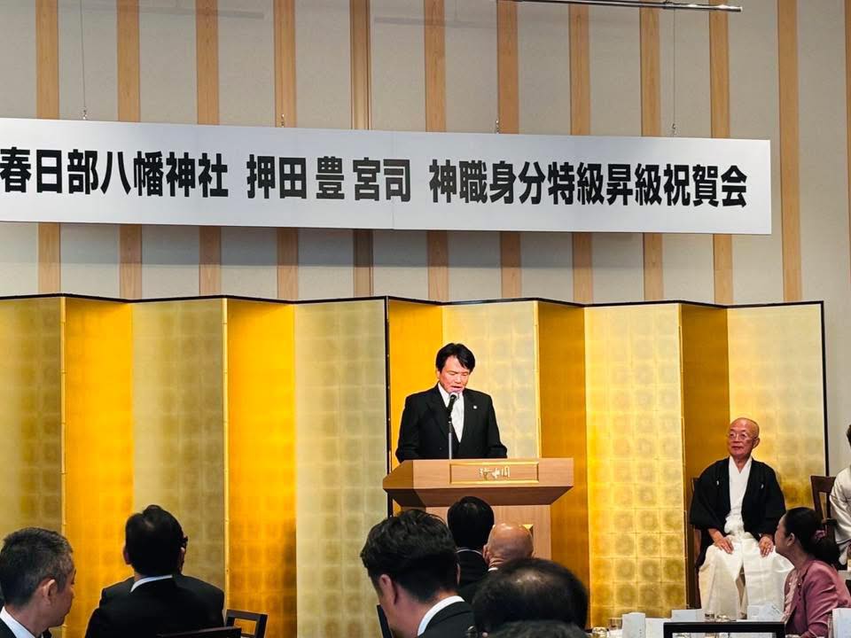 #春日部八幡神社 #押田豊宮司 #神職身分特級昇級祝賀会 が、大宮 #清水園 で開催され個人として出席、祝辞を申し上げました。 押田様は神職としてのみでなく、柔道を通じた青少年育成、#春日部薪能 の開催などに尽力されています。 そして、ご本人のご努力と共に、ご家族、氏子の皆様、神社関係者の皆様のお力添えがあればこその栄誉と存じます。 今後ますますのご活躍を祈念致します。このたびの特級ご昇進誠におめでとうございました。 #春日部市長 #いわや一弘 #かすかべプラスワン