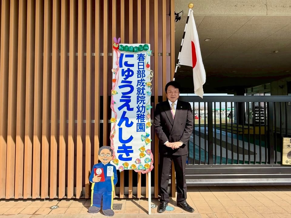 #春日部市 内各地の幼稚園、保育所、保育園、こども園等で、入園式が行なわれています。 私は、出身の #成就院幼稚園 に参列。友だちをいっぱい作って、毎日楽しく通ってください。 #春日部市 で子育てして良かったと実感できるよう、様々な施策に取り組んでまいります。 #春日部市長 #いわや一弘 #かすかべプラスワン