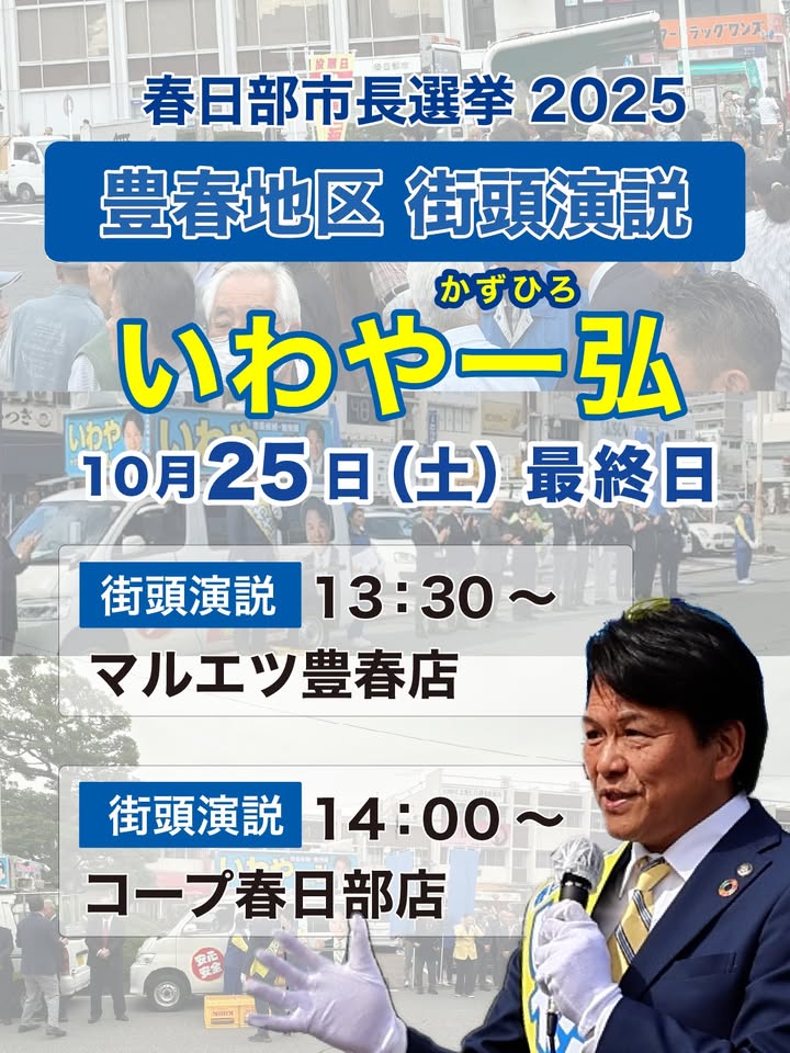 #春日部市長選挙2025 #岩谷一弘 #いわや一弘 #春日部 #豊春 #街頭演説 #最終日 #未来へ続く春日部を #春日部の未来をつなぐ #打ち上げ式