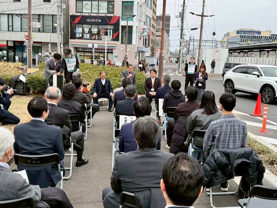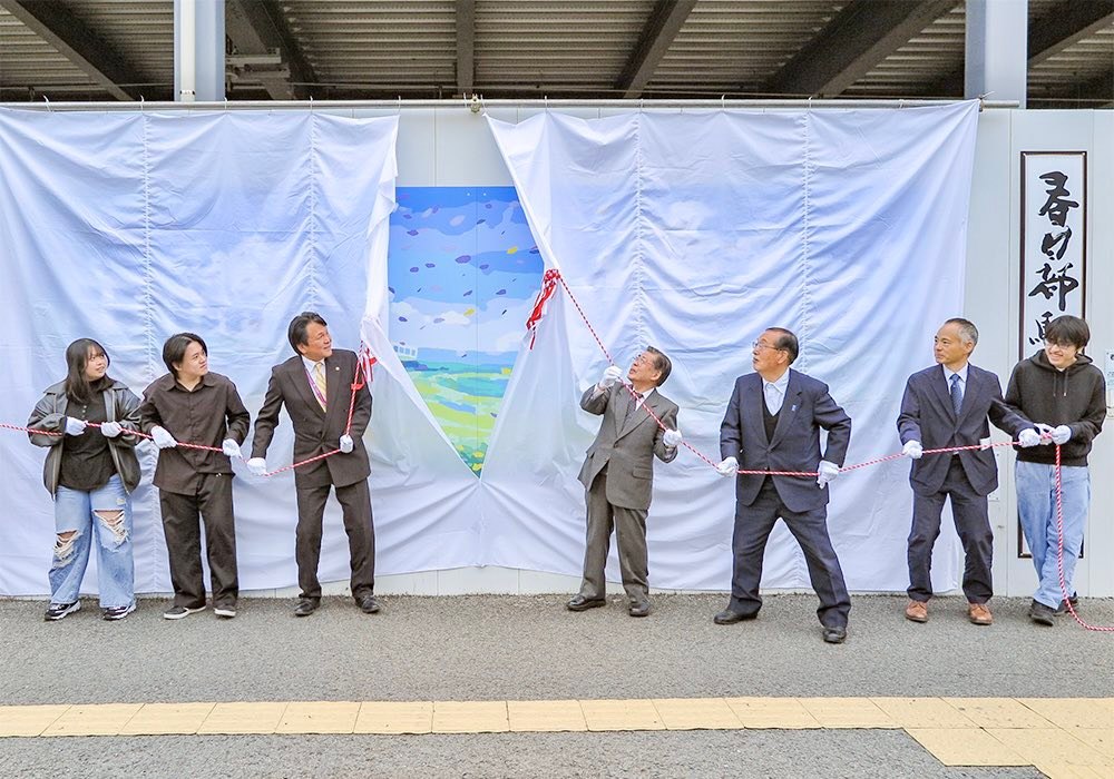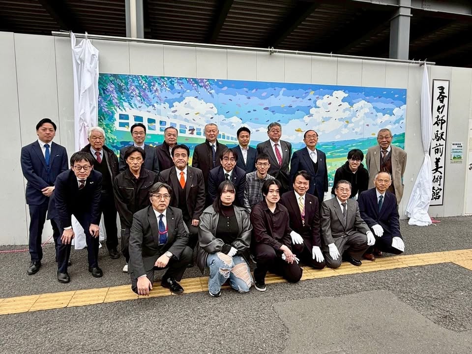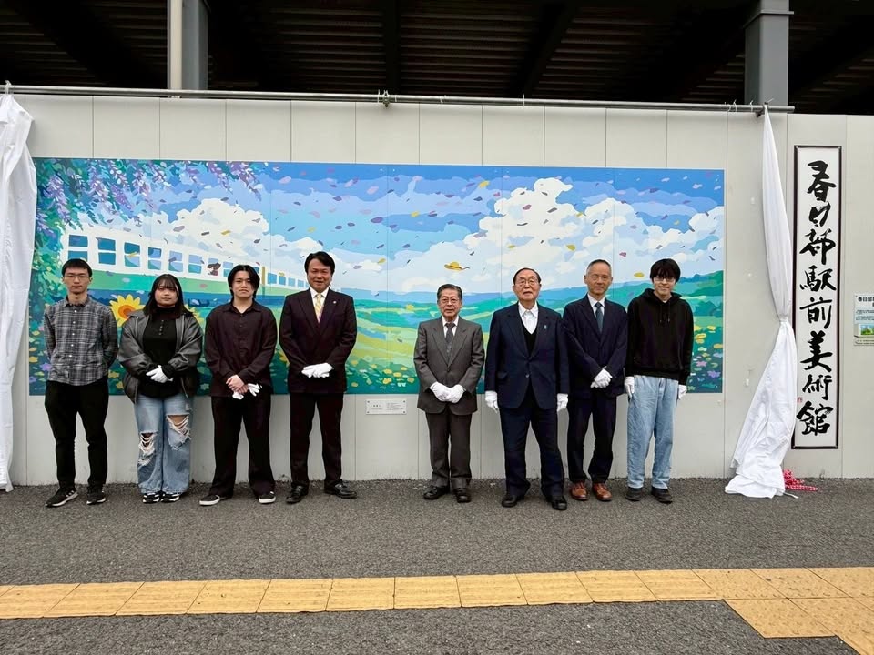 鉄道高架工事中の #春日部駅東口 の仮囲いへ #春日部駅前美術館 の第一号作品として展示する事を受けて、#除幕式 が行なわれました。