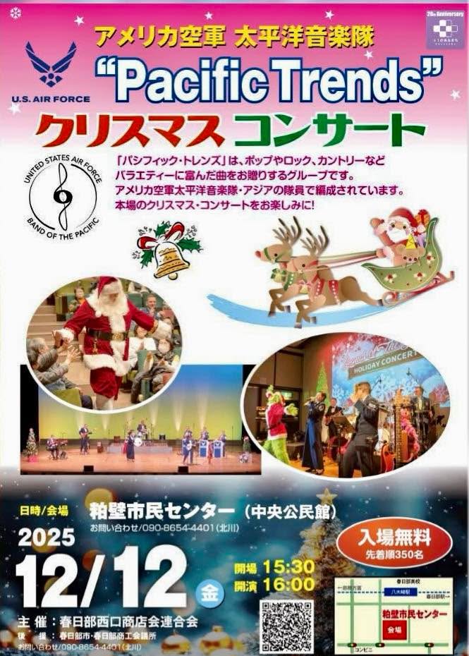#クリスマスコンサート #春日部西口商店会連合会 主催にて、#アメリカ空軍太平洋音楽隊 によるクリスマスミュージック中心のコンサートが開催されました。 #春工フェス2025 #春日部工業高校 によるイベントが、イオンモールにて開催。ミニスペーシアXは、大人気でした! #酉の市 12/14恒例で、春日部東口 #神明社 を中心として開催。多くのお店が出展し、盛り上がっていました。 #春日部市長 #いわや一弘 #かすかべプラスワン