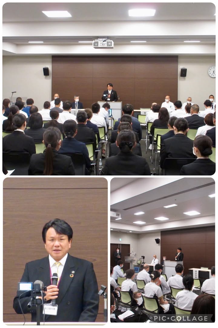 #病院事業管理者 、#正副病院長 参加の春日部市立医療センターの全体集会にて、市長訓示を申し上げました。医療職への感謝と病院経営改善に向けても協力をお願いしました。