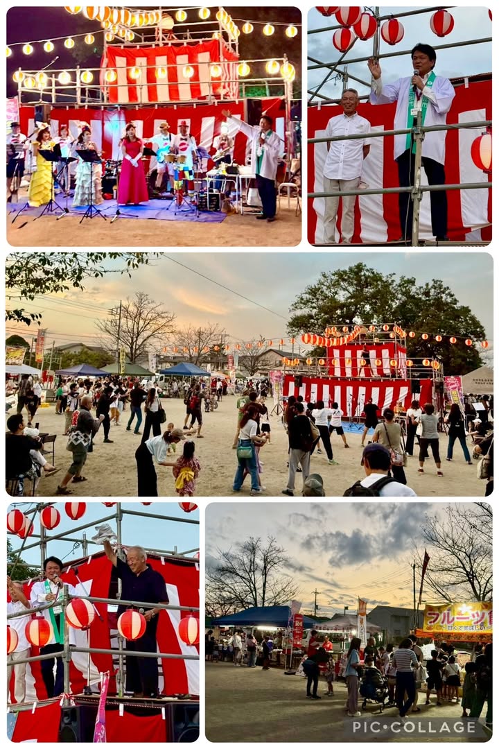 2日間の日曜日夕刻に伺いました。大きな公園に巨大な#やぐら と #キッチンカー が多数出店。大歓迎を受け、楽しませていただきました。大枝の皆様ありがとうございました。