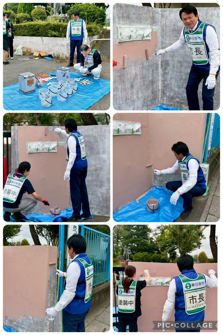 そこで、市長執行部で出来ないかを検討し、公共施設マネジメント研修の一環として、入庁4年以下と再任用職員にて、全校塗装することに決めました。