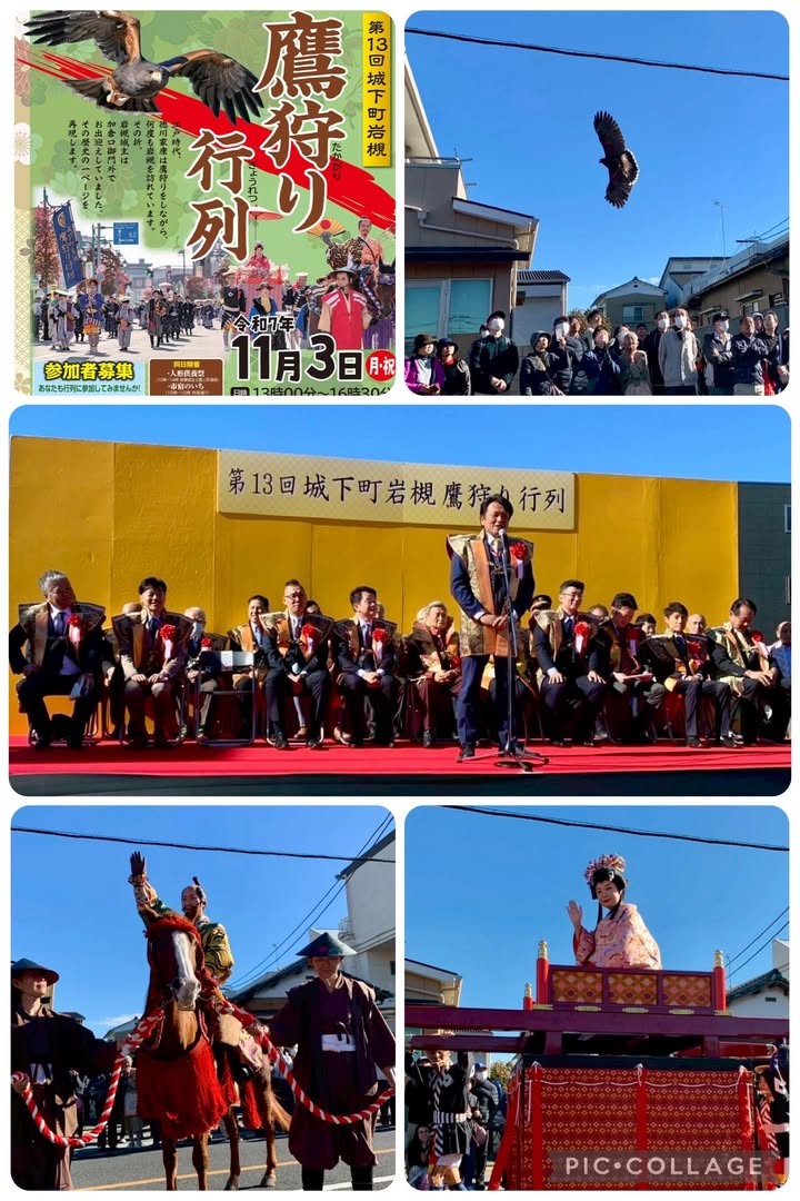お招きいただいた市外行事です。 #うたやの森フェスティバル #蓮田市役所 周辺にて開催。好天で多くの人出でした。りんごを買いました。 #鷹狩り行列 #岩槻区 で開催。初めて参加させていただきました。しかも羽織を賜りました。勇壮な鷹の姿が間近で見れて、観衆も喜んでいました。 #利根川安全祈願祭 #利根川栗橋流域水防事務組合 #副管理者 として出席。来年も水害の無い事を祈ります。 #春日部市 #いわや一弘 #かすかべプラスワン