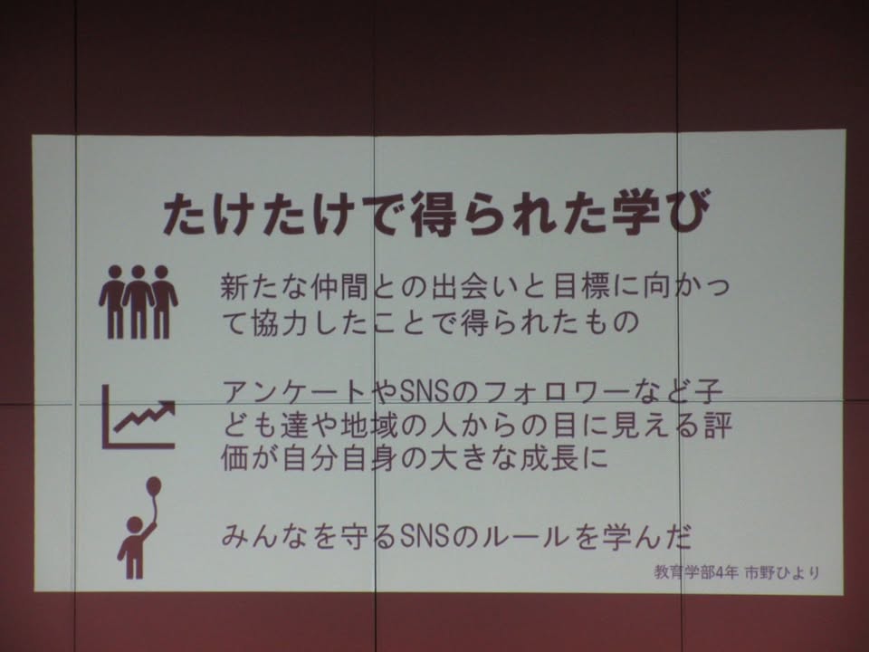 共栄大学生から、ユースワーカーとして、毎日、中高生と交流した内容が発表されました。