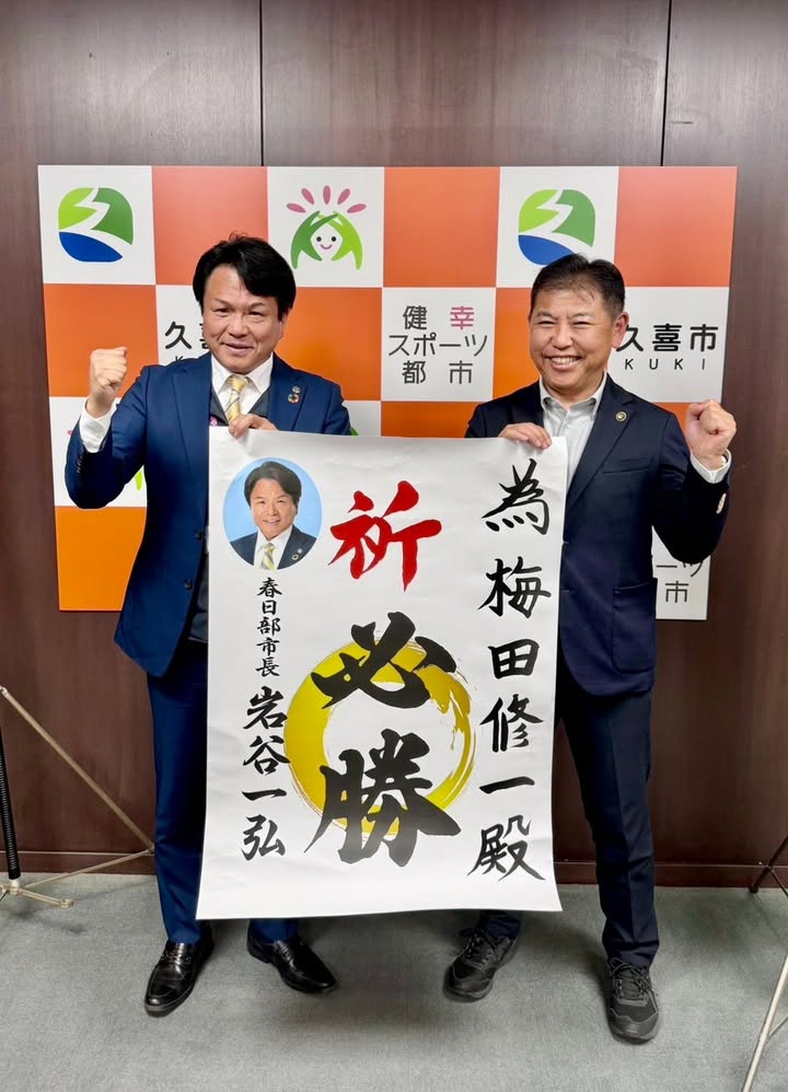 まもなく決戦を迎える #梅田修一久喜市長 を激励しました。頑張ってください!