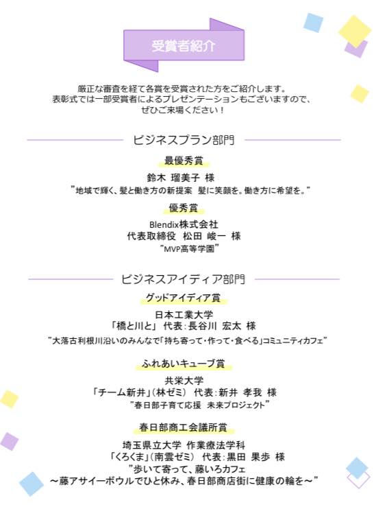 🟪かすかべビジネスプランコンテスト表彰式・記念講演会