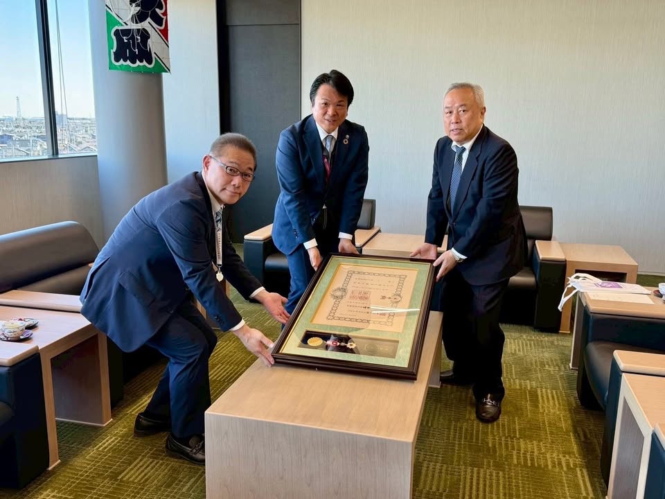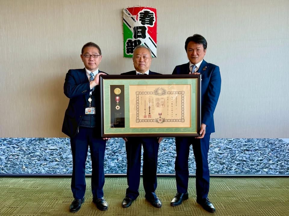#元春日部市議会議員 #中川朗 氏 #旭日小授賞 に対して、#小久保市議会議長 と共に、叙勲額を贈呈させていただきました。ご受賞誠におめでとうございます。