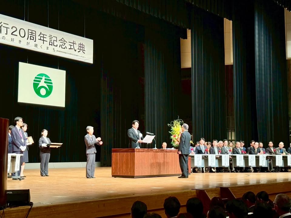 ㊗️感謝の20周年記念式典ありがとうございました (文章長いです) 令和7年10月4日 #春日部市市制施行20周年記念式典 を挙行させていただきました。#正和工業にじいろホール 1500人収容の大ホール #満席 のご来場に心から感謝申し上げます。 ① #令和7年度春日部市表彰 #功労賞 37名、#善行賞 25名、#技能功労賞 3名全員の方に、直接賞状をお渡ししました。受賞された皆様誠におめでとうございました。 ② #ナターシャグジー #コンサート #ウクライナ歌手 ナターシャグジーさん記念コンサートを催しました。#水晶の歌声 と祖国ウクライナを想うメッセージに感動が溢れました。 ③ #20周年記念式典 私から心を込めて #式辞 を申し上げました。 ご来賓を紹介させていただき、代表で、 #大野元宏埼玉県知事 #白土幸仁埼玉県議会議長 #清水勇人さいたま市長 #三角創太代議士 に祝辞をいただきました。 続いて、20周年記念特別表彰として、554名の方に賞状をお贈りしました。 代表として、5名の方に直接お渡ししました。 さらに、平成17年からの歴代首長へ特別表彰を贈り、代表にご挨拶を賜りました。 ④ #フィナーレ ナターシャグジーさんと #豊春中学校 生徒と #粕壁小学校 児童とともに、会場全員で #ふるさと を大合唱しました。 ご来場の方々には、長時間に渡り、ありがとうございました。皆様にとって、記憶に残る日となれば幸いです。 また、式典司会と落語をお務めいただいた #かすかべ親善大使 #三遊亭楽正 師匠に心から感謝申し上げます。 そして最後に、長い準備期間から、リハーサル、設営、運営、後片付けまで、この事業を大成功に導いてくれた職員の皆さんに心から感謝します。本当にありがとうございました。 これからも力を合わせて #春日部 を一緒に進めてまいりましょう! #春日部市長 #いわや一弘 #かすかべプラスワン